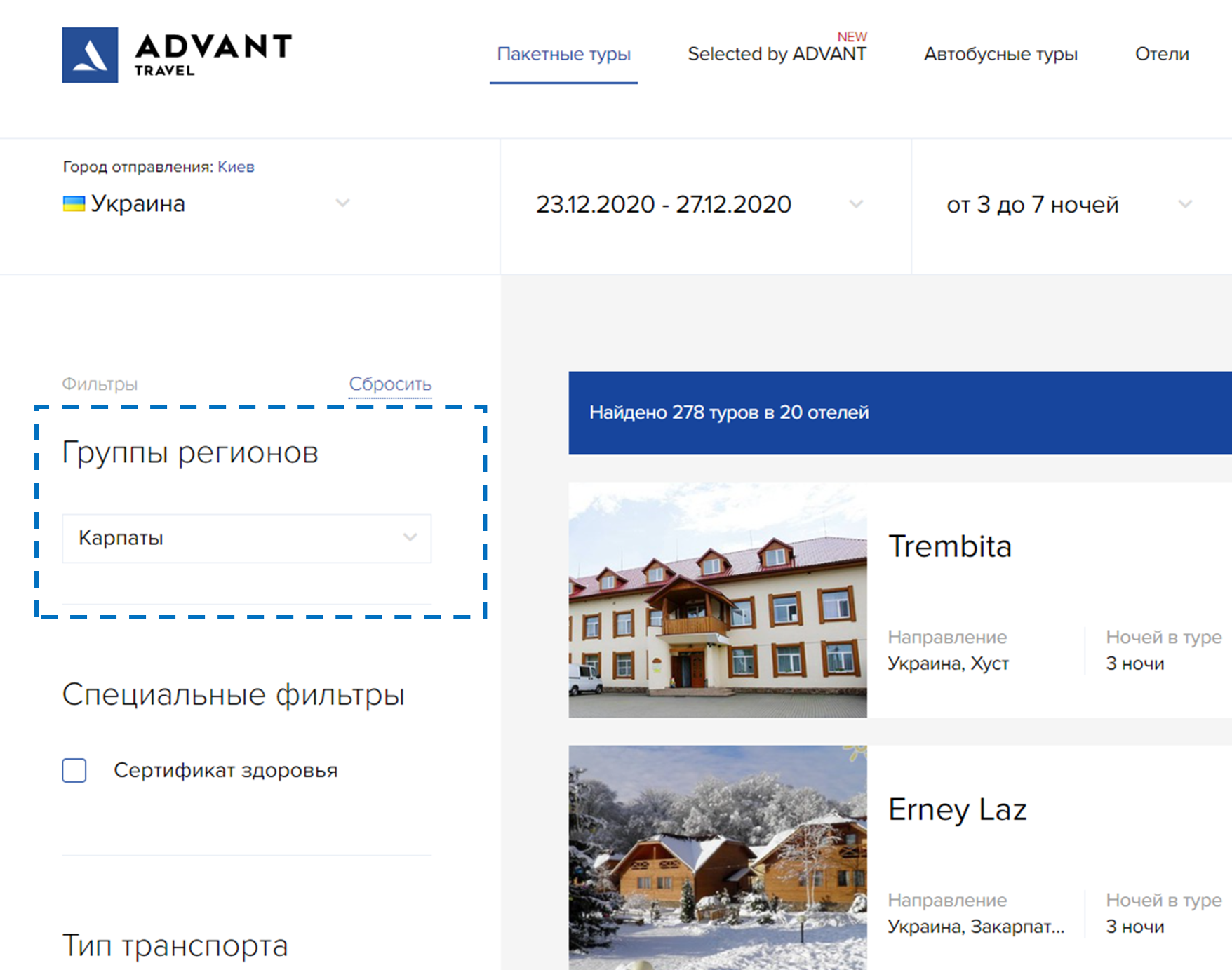 Для вашего удобства мы создали специальный дополнительный фильтр, который подберет туры сразу по всем курортам Карпат: