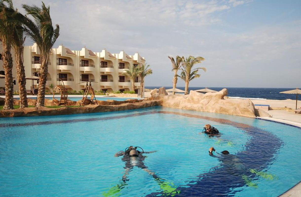 Отель расположен в заливе Sharks Bay с великолепным коралловым рифом. Очень красивая зеленая территория, каскадом спускающаяся к морю, большие фигурные бассейны, наличие бассейна с морской водой, множество ресторанов и баров, собственное профессиональное поле для игры в гольф, теннисные корты.